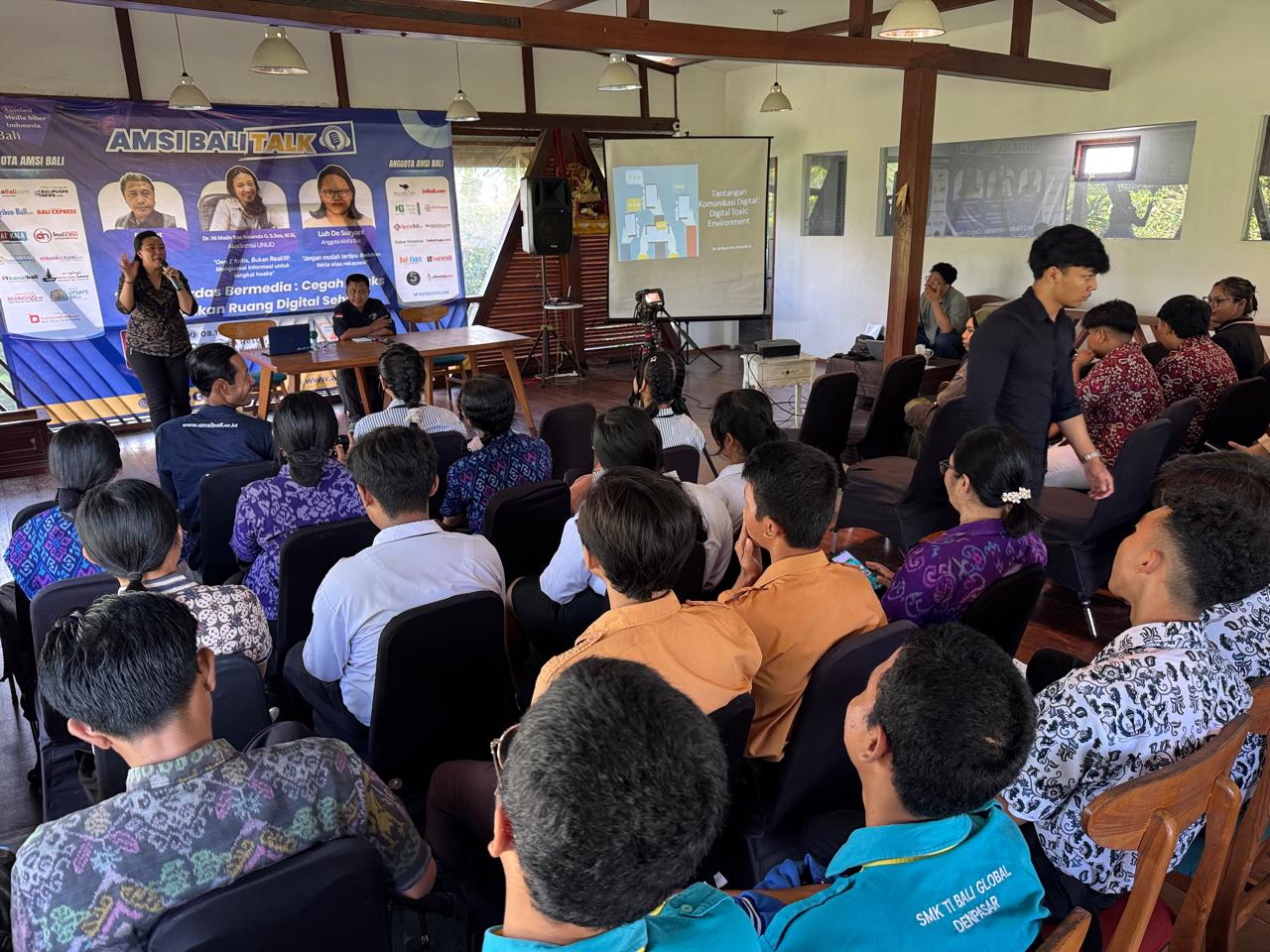Kegiatan AMSI Bali Talk ini menargetkan penguatan literasi digital dari kalangan muda dengan menghadirkan dua narasumber, yaitu Dr. Ni Made Ras Amanda G., S.Sos., M.Si. dari Universitas Udayana (Unud) dan Luh De Suryani, anggota AMSI Bali.