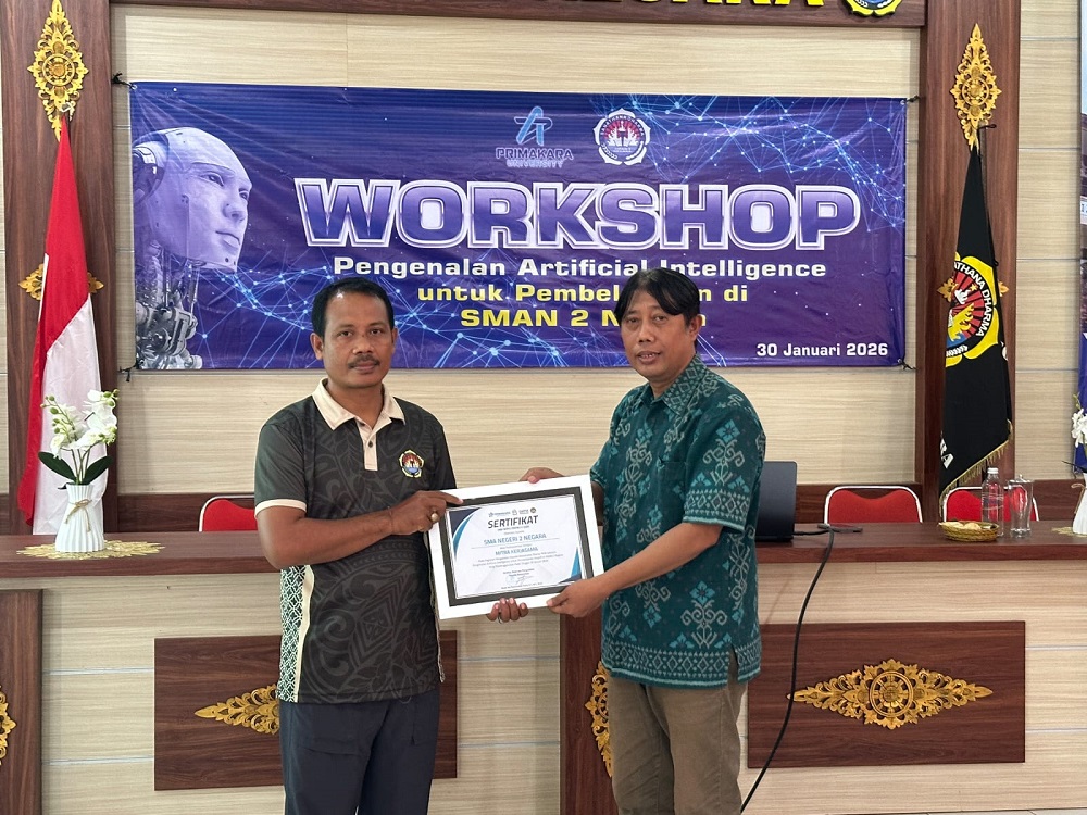 SMA Negeri 2 Negara berkolaborasi dengan Universitas Primakara dalam kegiatan pengabdian masyarakat bertema “Pengenalan Artificial Intelligence (AI) untuk Pembelajaran Adaptif”.