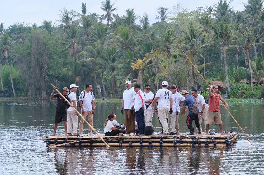 Setibanya di lokasi, De Gadjah langsung terjun ke danau. Ia ikut membersihkan rumput liar yang menutupi permukaan air, bahkan tanpa ragu turun langsung hingga sepatu dan celananya basah serta berlumpur.